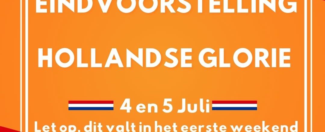 Op zaterdag 4 en zondag 5 juli stralen onze leerlingen in de eindvoorstelling Hollandse Glorie.